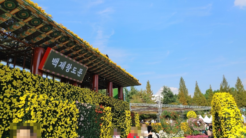 백제왕도문을 국화로 뒤덮었네요.. 가을엔 국화향기를 맡아야 합니다. 중양절(음력 9월 9일) 지나가니~