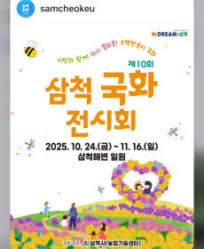 올해로 10회째를 맞는 삼척 국화전시회는 국화 조형작과 다륜작 등 총 10,500여 점의 국화 작품을 전시해 방문객들의 눈길을 사로잡는다. 또한 지역 농특산물 홍보 및 판매 부스, 국화 향기를 느낄 수 있는 체험부스 운영과 함께 관내 공연동아리의 거리공연도 다채롭게 펼쳐진다.