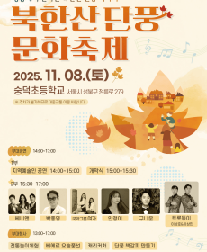서울의 가을을 물들이는 ‘북한산 단풍문화축제’가 오는 11월 8일(토) 오후 1시부터 5시까지 숭덕초등학교 운동장에서 열린다.