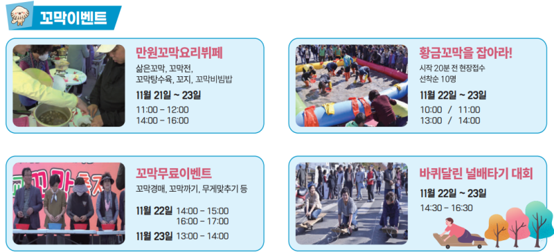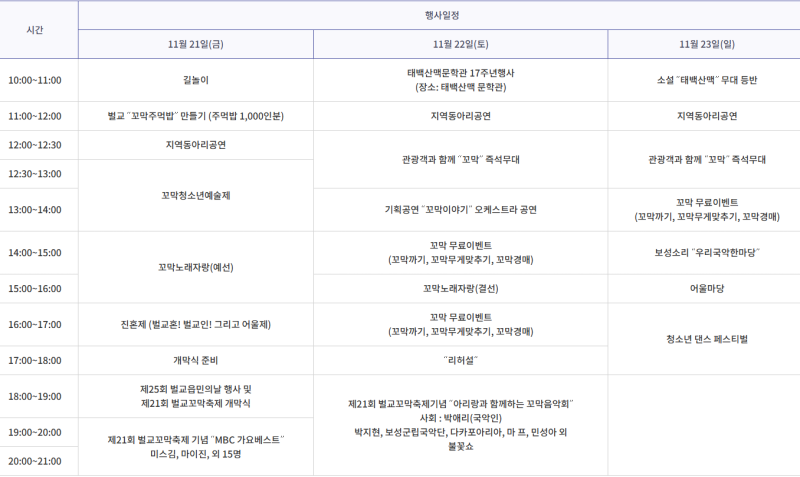문의 :벌교꼬막축제추진위원회 061-857-7676, 벌교읍사무소 061-850-8065, 문화관광실 061-850-5213