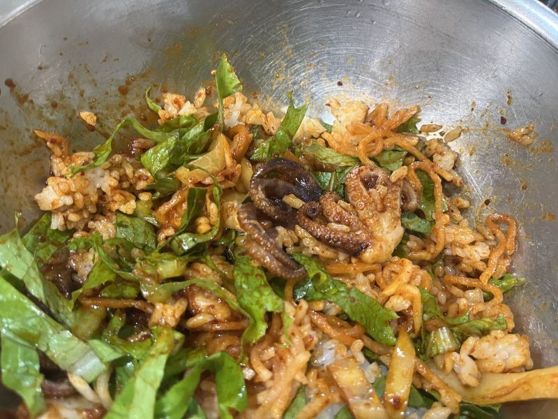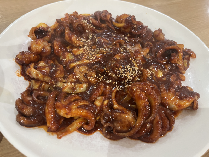 맛있는 주꾸미 볶음애서 불향의 내음에 매료되네요. 함께 나오는 냉묵사발의 국물과 어울립니다.
