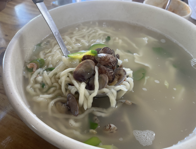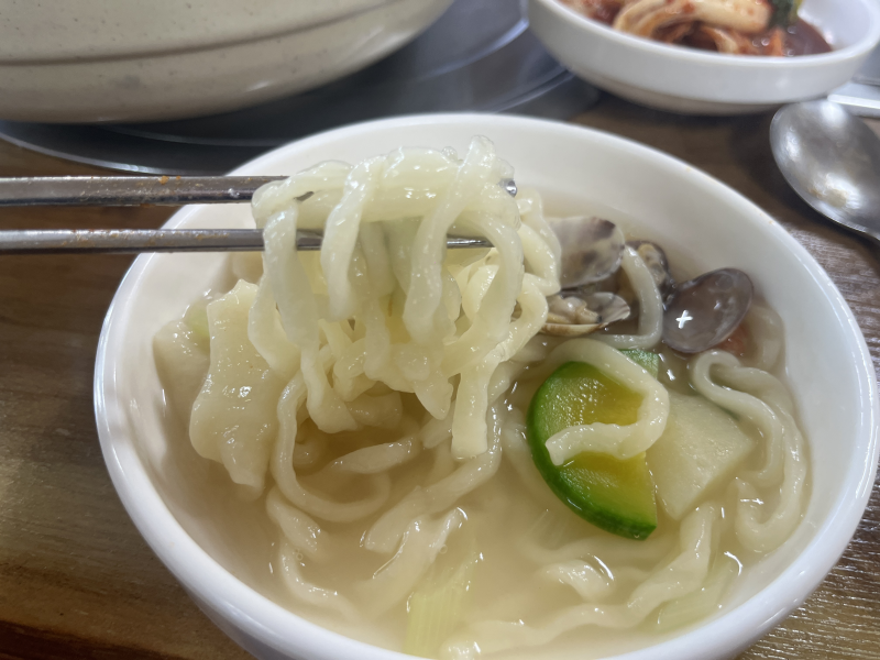 수제 면발의 식감, 깔끔한 바지락 국물 맛에 매료가 됩니다.