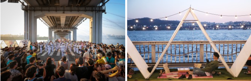 상반기 시민 만족도 조사 1위를 차지한 푸드트럭은 회차별 30대씩 운영된다. 기존 잠수교 남단에 집중 배치됐던 푸드트럭을 하반기에는 남단, 중간부(낙타봉), 북단에 10대씩 분산 배치해 혼잡도를 낮췄다. 푸드트럭 가까이에는 잔디와 돗자리를 추가 조성해 시민들이 여유롭게 즐길 수 있는 공간을 제공한다.