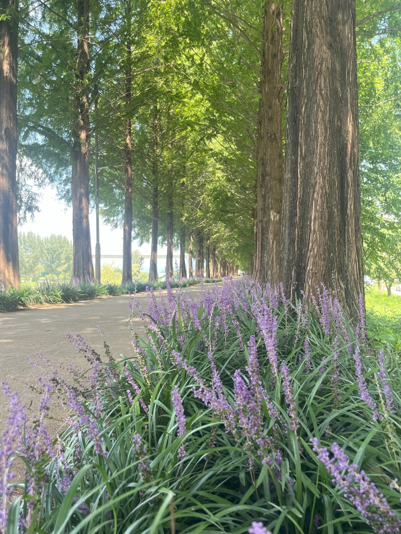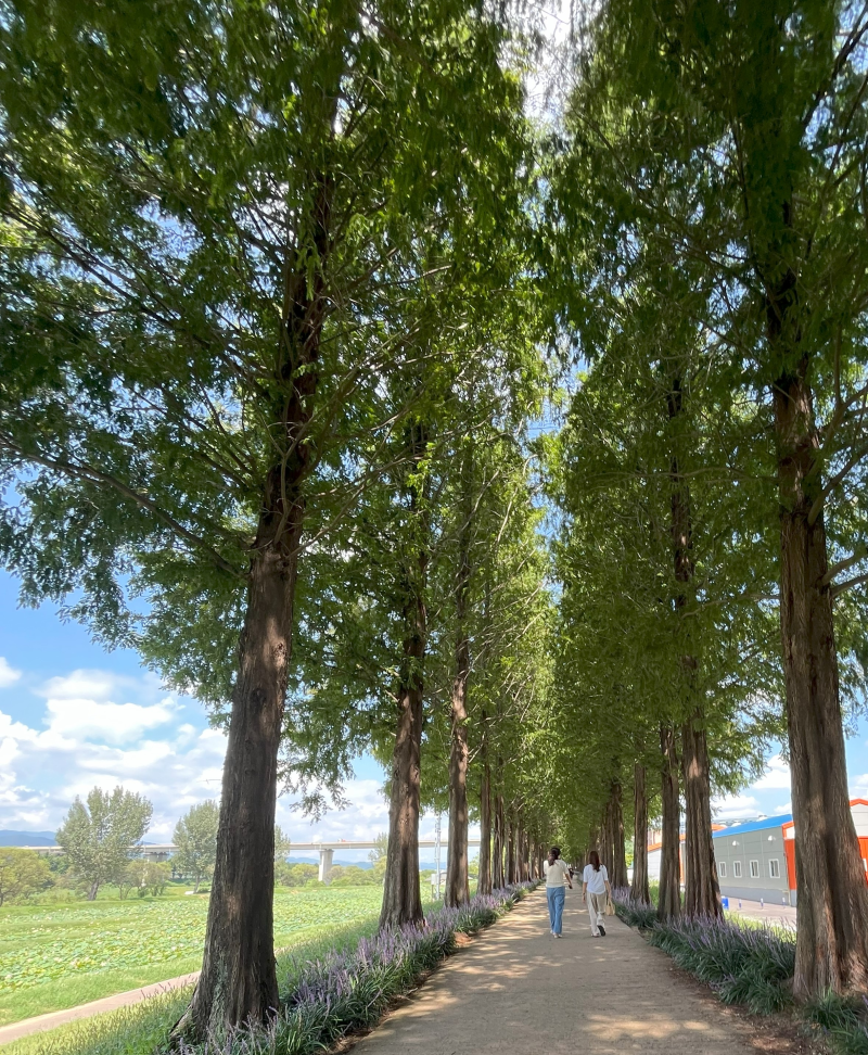 192그루의 메타세콰이어가 크게 성장해 있고, 8월~9월에 가면 맥문동 꽃밭이요, 10월~11월에 가면 단풍철이라 참 좋아요.